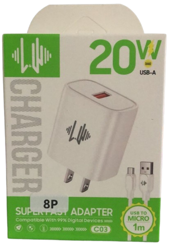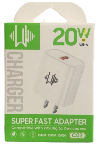 CARGADOR RÁPIDO LW 20W USB-A – SUPER FAST ADAPTER (MODELO C03)